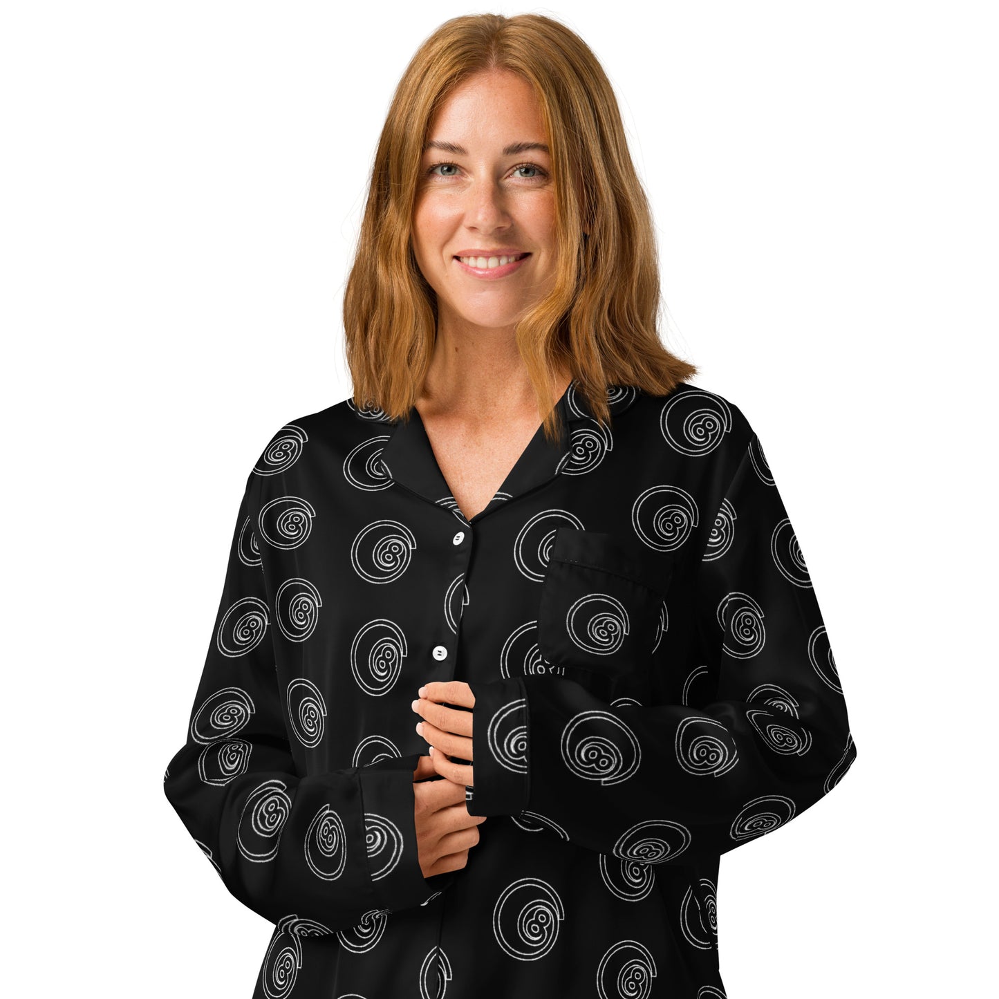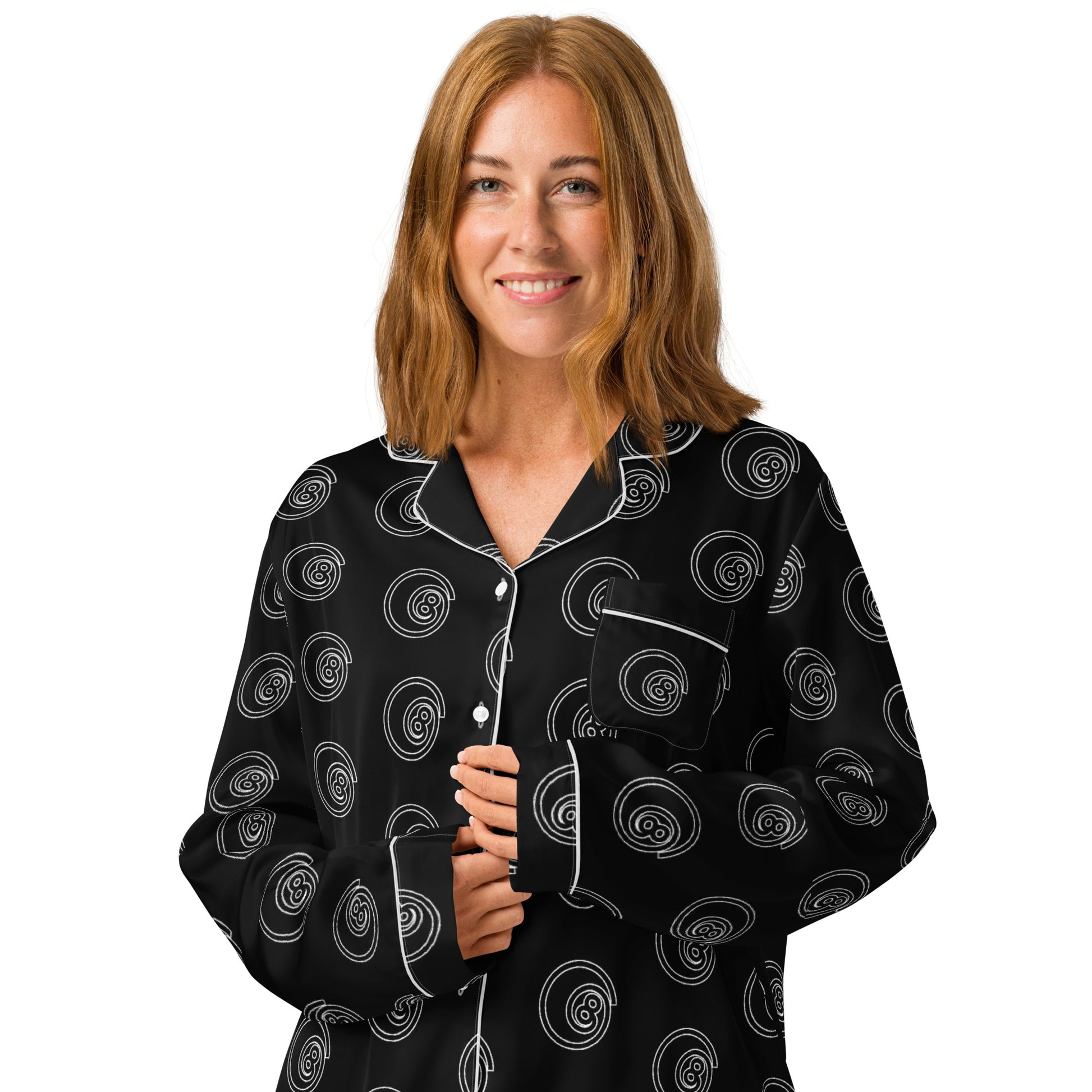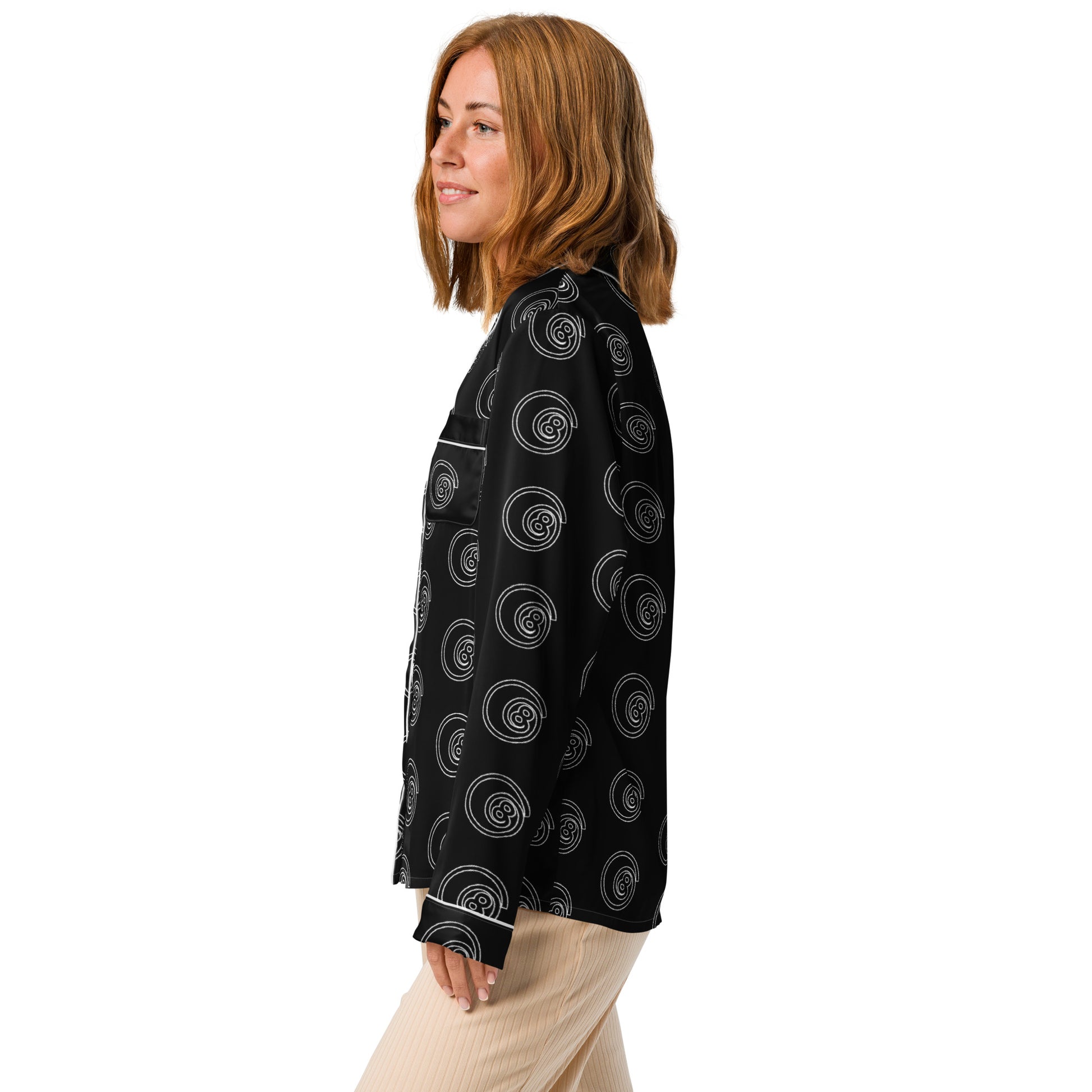This silky pajama top is ideal for a cozy day when you want to feel both comfortable and elegant. It features a relaxed fit, chest pocket, and elegant piping detail.